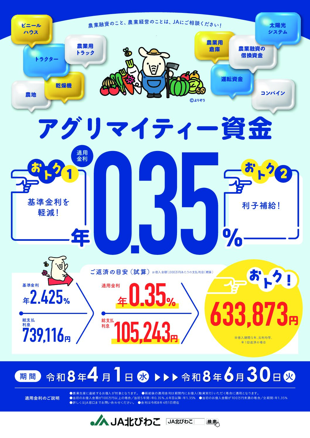 詳しくは、JA北びわこ各支店窓口までお問い合わせください。