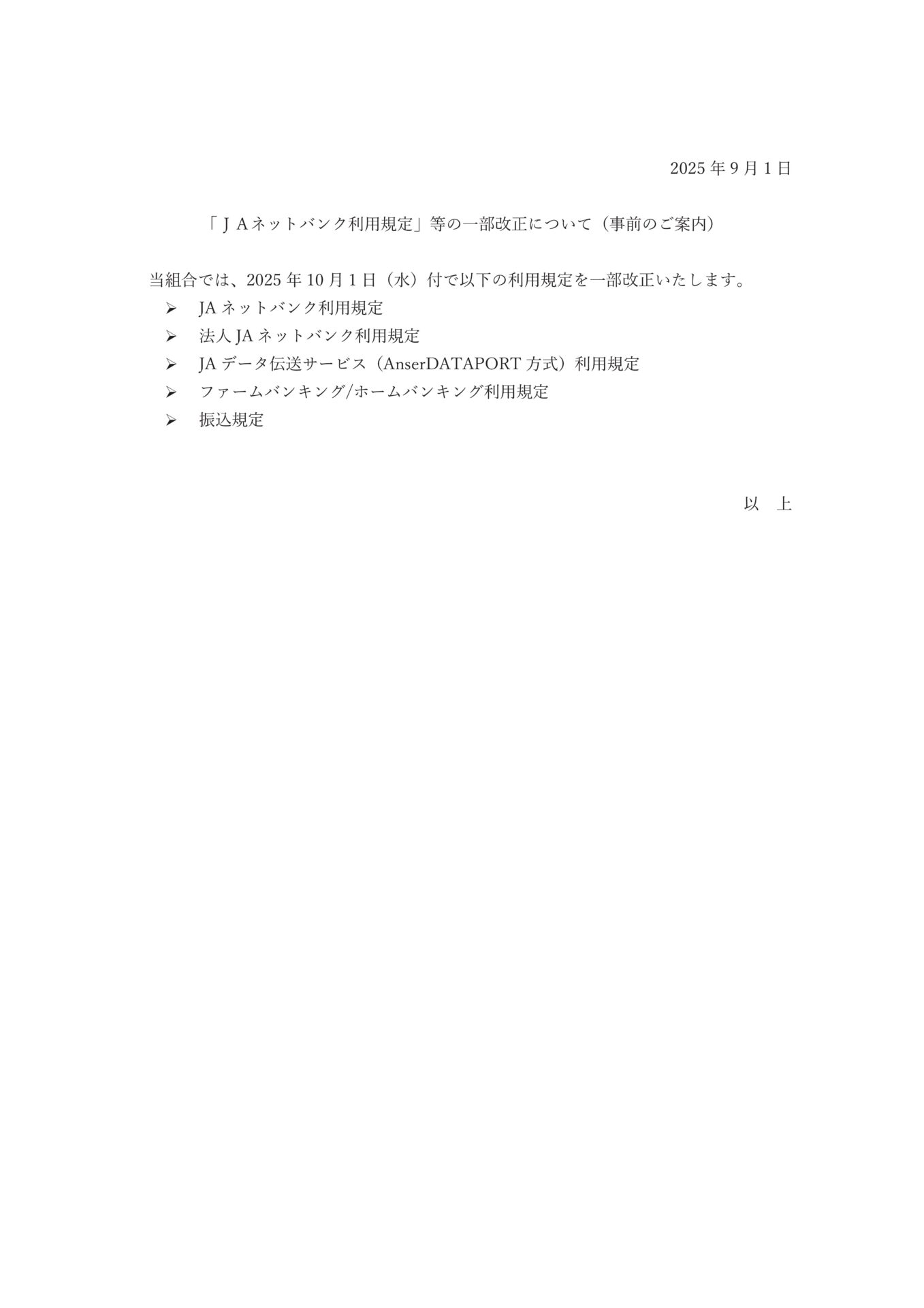 2025年10月1日付で利用規定の一部を変更させていただきます。