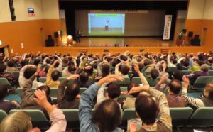 続いて、家の光協会の竹村氏から、創刊100周年を迎えた「家の光」について紹介がありました。 記念に制作されたダンス「家の光100ダン」を、会場のみんなで一緒に楽しく踊りました。