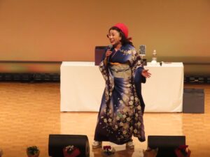 スペシャルゲストは、“ものまね女王”坂本冬休みさん! 『笑って長生き!夢を追いかける~いくつもの試練を乗り越えて~』と題した講演では、人生観や芸能界での経験をユーモアたっぷりに語っていただきました。迫真のものまねも披露され、会場は笑いと感動に包まれました。
