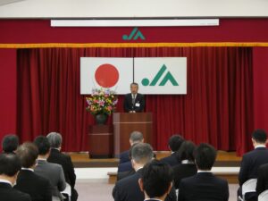 4月1日、本店において令和8年度採用職員の入組式を執り行いました。 今年度は5名の新入職員が新たに仲間に加わり、希望に満ちた表情で職員としての第一歩を踏み出しました。