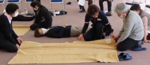 3月17日、赤十字救急法の短期講習を開催し、15名の方にご参加いただきました。今回の講習では、心肺蘇生(CPR)やAEDの使い方、気道異物除去、手当の基本、傷病者の観察、毛布を使った保温方法など、一次救命処置に必要な内容を幅広く学びました。